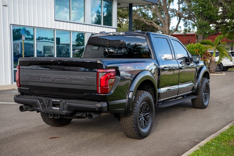 Introducing the 2024 Ford F-150 Raptor, a powerful and versatile truck engineered for performance enthusiasts and off-road adventurers alike. This particular model is presented in an eye-catching Agate Black exterior, which not only exudes a sense of sophistication but also enhances the ruggedness associated with the Raptor line. With an odometer reading of below 11,000 miles, this vehicle has been driven an average of less than 6,000 miles per year, suggesting that it has been meticulously cared for, offering an excellent opportunity for prospective buyers looking for a well-maintained truck.