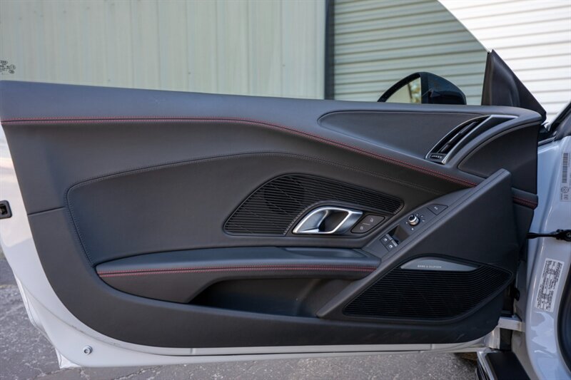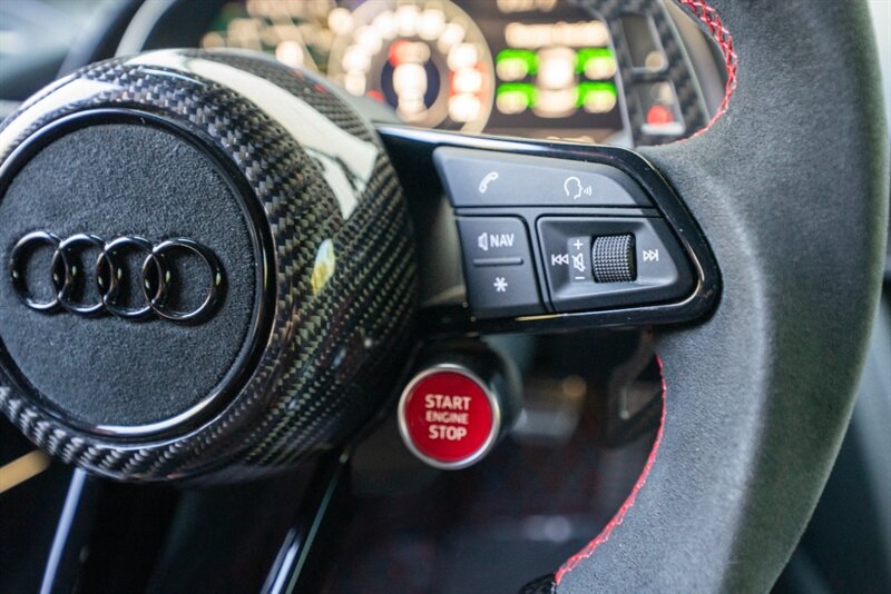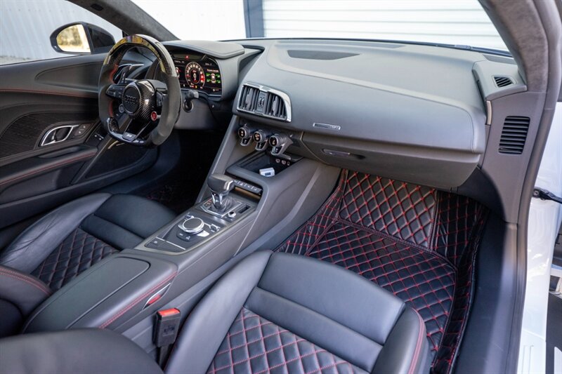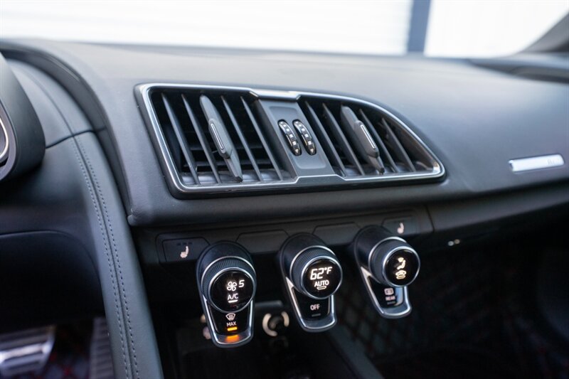 The R8’s driver-centric electronics prioritize essential information and connectivity. Audi’s digital instrument cluster provides configurable readouts for speed, tachometer, navigation directions, and vehicle status, placing performance-critical data directly in the driver’s line of sight. The center console hosts a high-resolution infotainment interface that supports navigation, smartphone integration, and vehicle settings. Apple CarPlay and Android Auto compatibility enable seamless phone mirroring for media and communications. Additional convenience features usually include Bluetooth hands-free calling and audio streaming, multiple USB ports and an integrated rearview camera with parking sensors for maneuvering assistance.