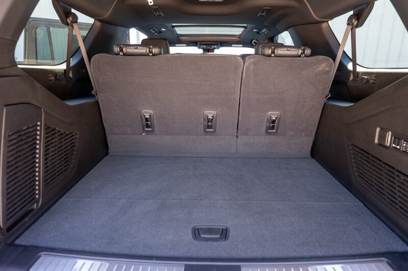 - Storage and utility: Ample in-cabin storage includes deep door pockets, a center console bin, cupholders for all seating rows and roof-mounted grab handles. Power outlets and USB ports are strategically located to support devices in all three rows. A household-style 120V outlet may be available as factory equipment to run small accessories.