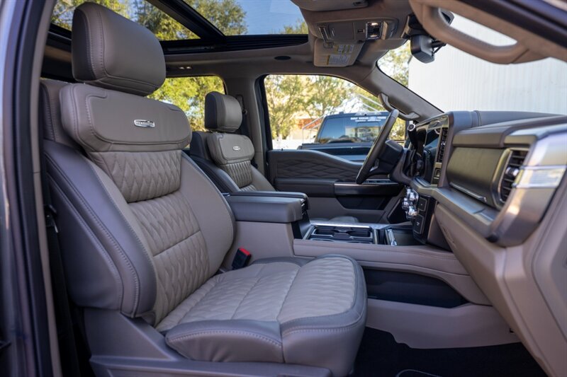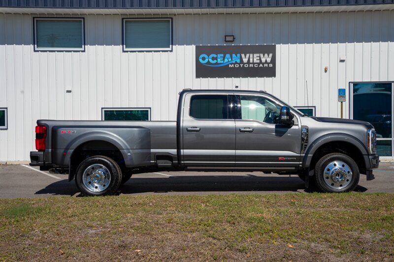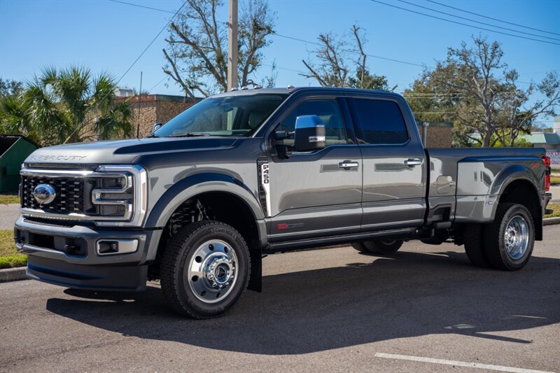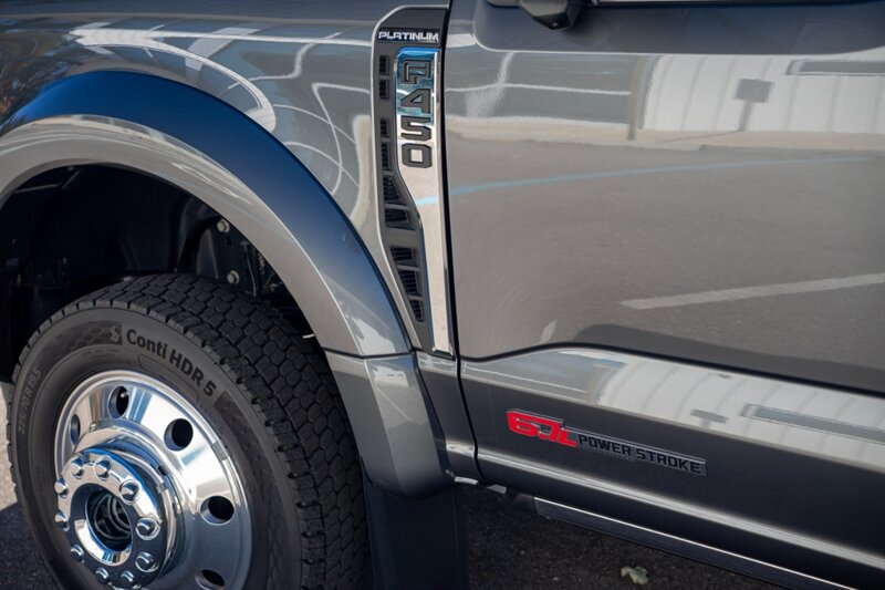 This 2025 Ford F-450 Platinum+ is a premium example of Ford’s heavy-duty pickup lineup, finished in Carbonized Gray exterior paint with a Medium Dark Slate leather interior. It is powered by the high-output Power Stroke 6.7L Biodiesel Turbo V8 diesel engine rated at 500 horsepower and approximately 1,200 lb-ft of torque, paired with Ford’s heavy-duty automatic transmission. With fewer than 2,000 miles on the odometer and an average use of less than 1,000 miles per year, the truck remains in excellent overall condition and shows as virtually new in mechanical and cosmetic terms.
