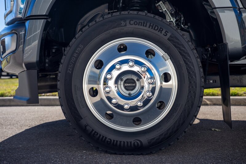 - Wheels & tires: Premium alloy wheels matched to heavy-duty tires appropriate for high-load use and long-distance highway performance. The F-450 configuration supports dual rear wheel (DRW) setups for enhanced lateral stability when towing.