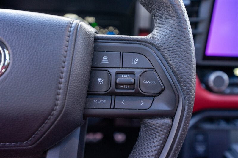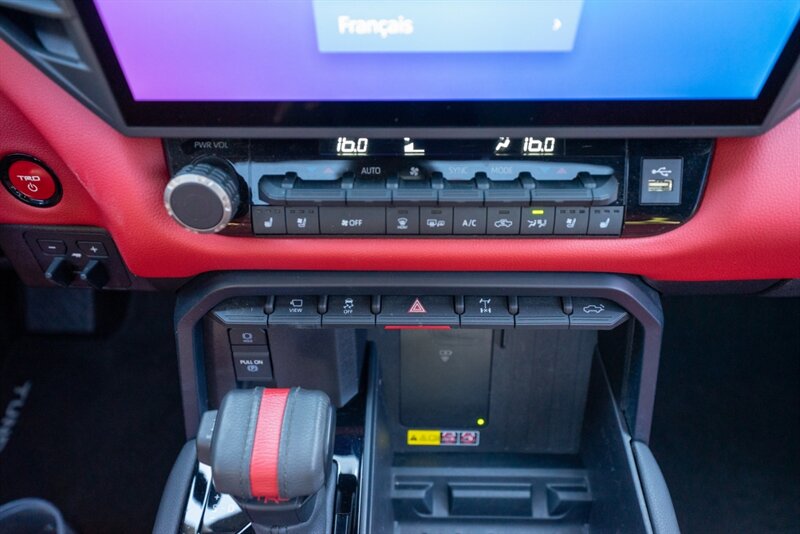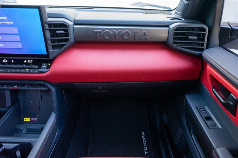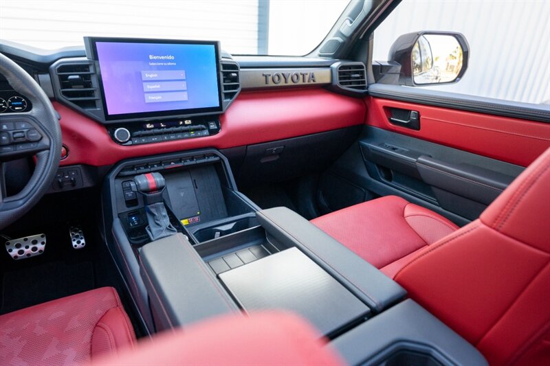 - Seating: Distinctive Cockpit Red leather- or leather-trimmed seats with TRD Pro embossed or embroidered elements and contrast stitching. Front seats are typically power adjustable with lumbar support and include heating and ventilation functions to maintain comfort in varied climates.