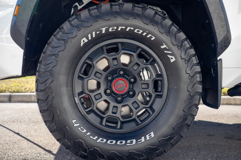 - Wheels and tires: TRD Pro-specific wheels (matte black or dark finish) paired with all-terrain tires sized for the trim provide both the look and capability required for off-road excursions.