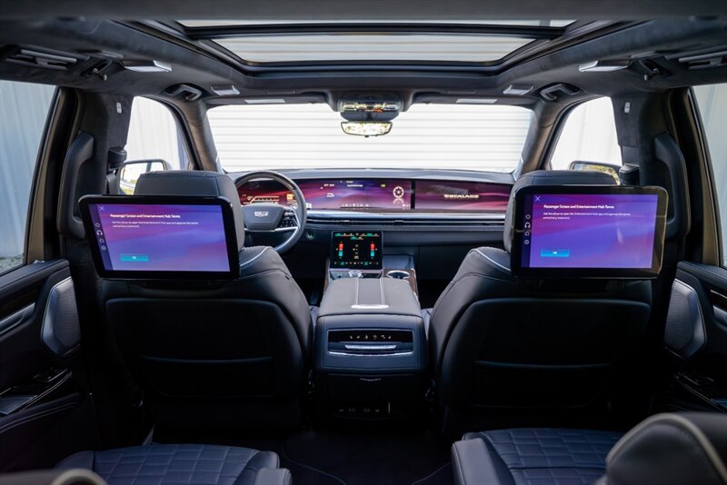 Cadillac’s factory infotainment package on the Platinum Sport is designed to combine an easy-to-use interface with high-quality audio and comprehensive connectivity. The system includes a large, high-resolution display for navigation, media and vehicle settings, along with a secondary driver information display that presents speed, trip information and advanced driver assist status. Standard connectivity features include Bluetooth hands-free phone and audio streaming, smartphone integration via Apple CarPlay and Android Auto, factory navigation, and multiple USB ports for device charging. A premium factory audio system provides detailed, room-filling sound tuned for the vehicle’s cabin; controls for audio, climate and