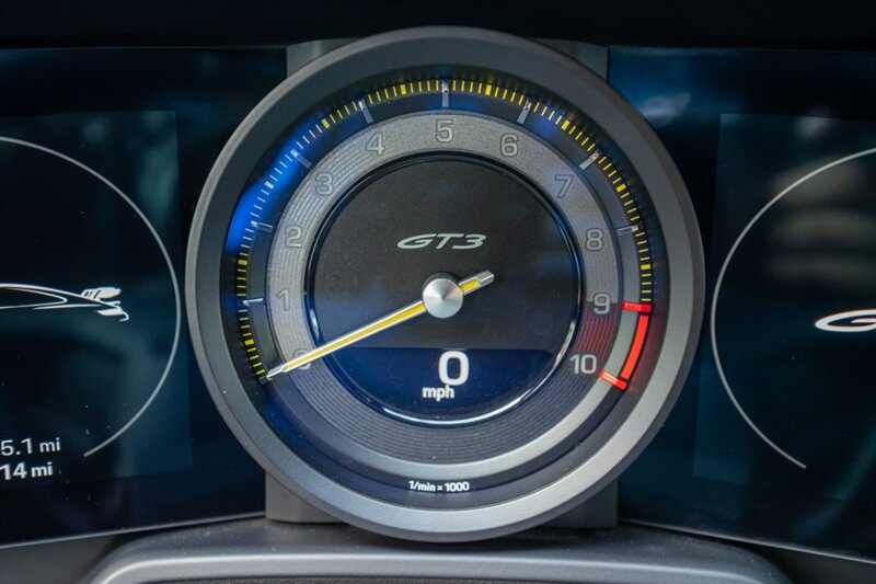 Introducing the 2023 Porsche 911 GT3, a remarkable blend of performance engineering and iconic design, crafted for those who demand the extraordinary in their driving experience. The heart of this high-performance sports car is its 4.0L H6 engine, producing an exhilarating 502 horsepower and 331 lb-ft of torque. This powerful engine is paired with a precision-engineered 7-speed dual-clutch transmission (PDK) that delivers rapid gear changes and enhances the vehicle’s acceleration, allowing it to sprint from 0 to 60 mph in just 3.2 seconds. The GT3 is not just about raw power; it is designed to offer an engaging driving experience, with a top speed of approximately 197 mph.