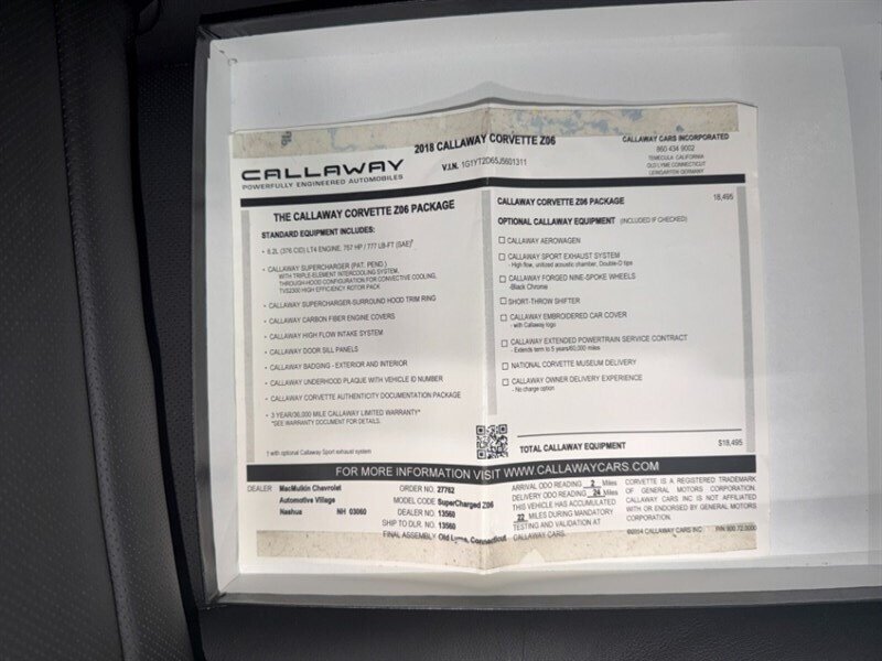 2018 Chevrolet Corvette Z06 CALLAWAY EDITION 661-MILE 2-Door Coupe